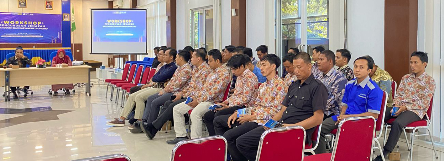 LPP AIK UM Metro mengadakan Workshop pengurusan jenazah bagi Dosen dan Tenaga Kependidikan di lingkungan Universitas Muhammadiyah Metro (20/02). Kegiatan ini dilaksanakan di Aula Gedung HI UM Metro dan dihadiri sekitar 112 peserta internal dari UM Metro.