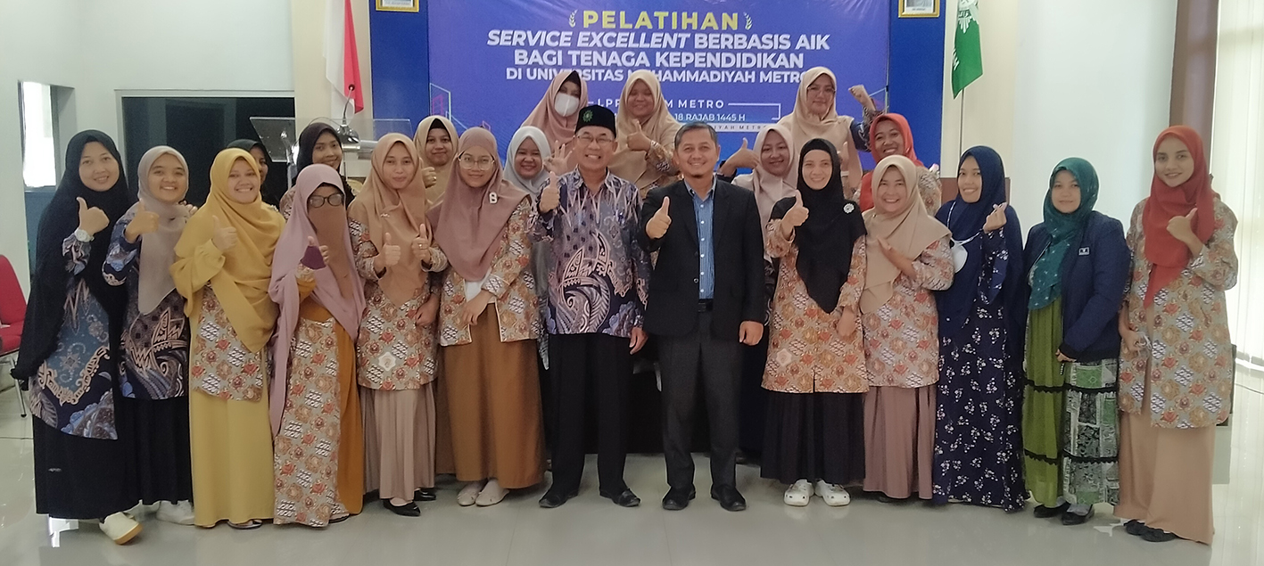 UM Metro menggelar pelatihan Service Excellence berbasis Al Islam dan Kemuhammadiyahan (AIK) bagi Pegawai di lingkungan UM Metro (30/01). Sebanyak 100 orang pegawai mengikuti pelatihan ini bertujuan untuk meningkatkan keterampilan layanan pelanggan dengan integrasi nilai-nilai Islam, seperti integritas, kejujuran, dan empati. Para peserta mendapatkan materi tentang bagaimana menerapkan prinsip-prinsip AIK dalam setiap aspek pekerjaan mereka untuk mencapai standar layanan yang lebih tinggi. Dengan pelatihan ini,