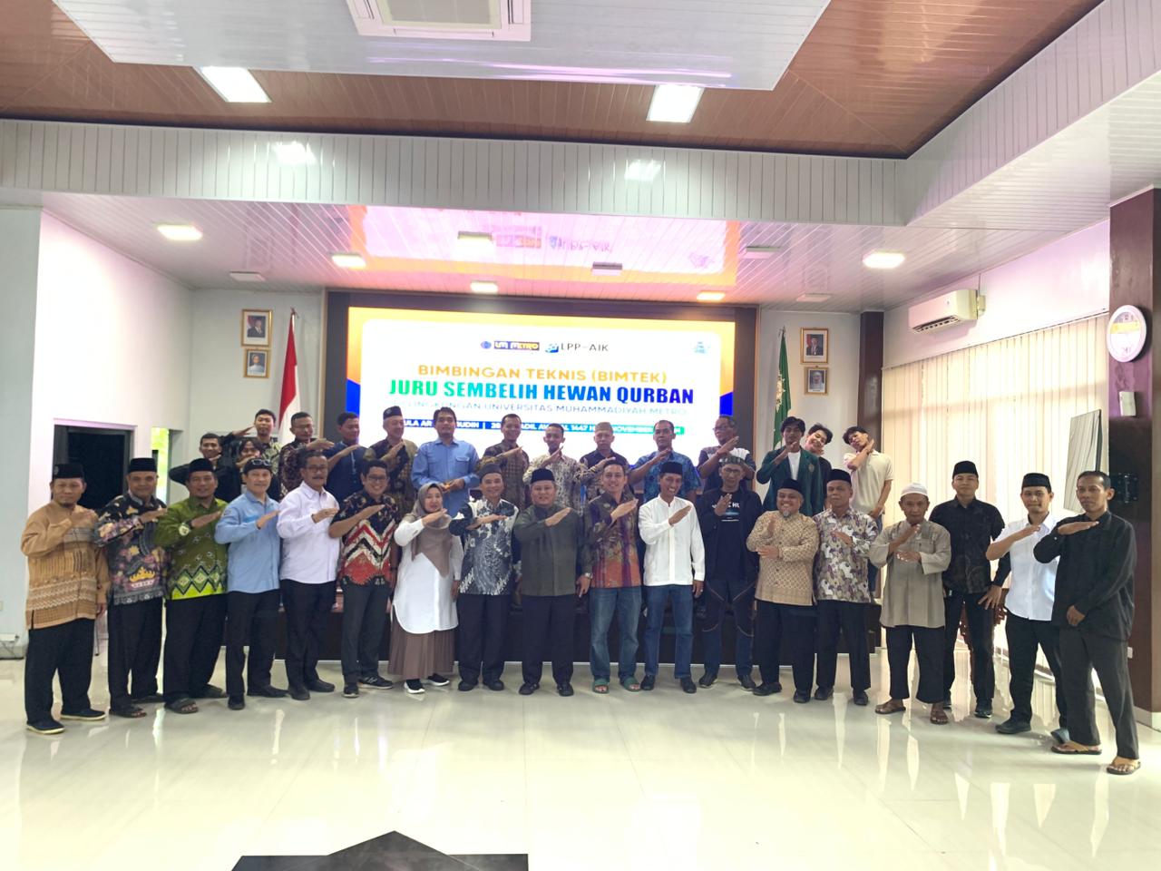 Universitas Muhammadiyah Metro (UM Metro) menyelenggarakan Bimbingan Teknis (Bimtek) Pelatihan Juru Sembelih Hewan Qurban bagi warga Muhammadiyah di lingkungan kampus dan persyarikatan, Rabu, 19 November 2025. Kegiatan yang berlangsung di Aula Gedung AR Fachrudin UM Metro mulai pukul 08.00 s.d. 11.45 WIB ini diikuti oleh peserta dari Pimpinan Cabang Muhammadiyah, Pimpinan Ranting Muhammadiyah se-Kota Metro, serta pengurus masjid Muhammadiyah se-Kota Metro.